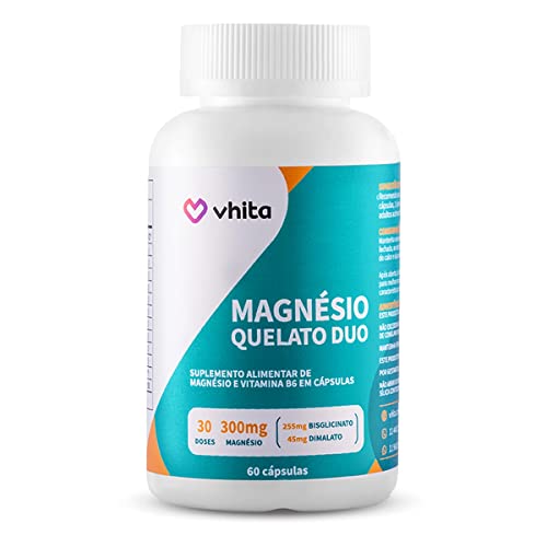 Avaliações relevantes sobre o magnésio quelato, dimalato e bisglicinato com vitamina B6 300mg, Duo Vhita (60 cápsulas)